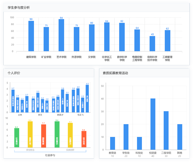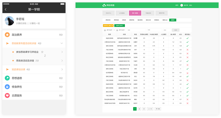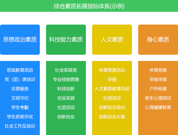 系统可依据学生的第二课堂参与情况,依据大学生综合素养指标体系,自动计算和统计学生的第二课堂成绩单。